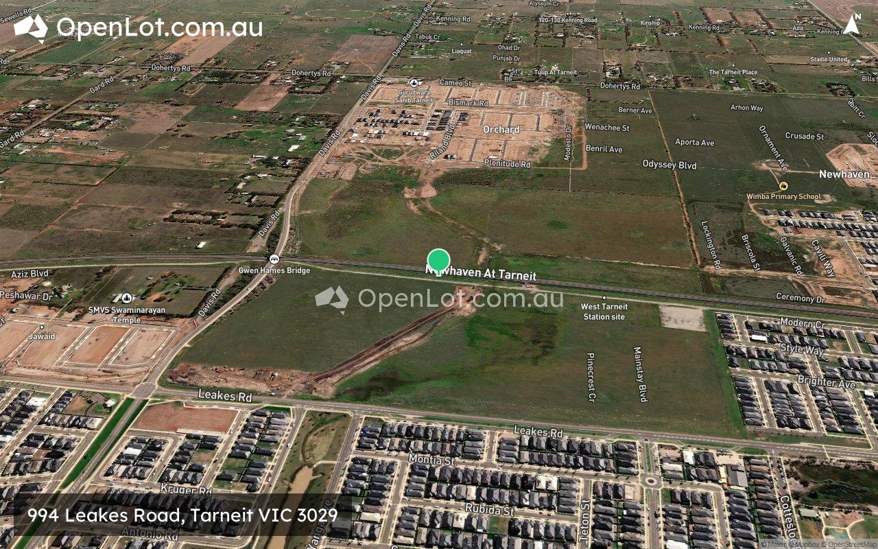 The updated Newhaven Masterplan has expanded to include an additional 53 hectares along Leakes Road. It encompasses four parks and playgrounds, with two already open, Wimba Primary School, future wetlands and waterway, proposed 10-hectare sports grounds, a town centre, and the proposed Tarneit West Train Station (planned to open in 2026).
