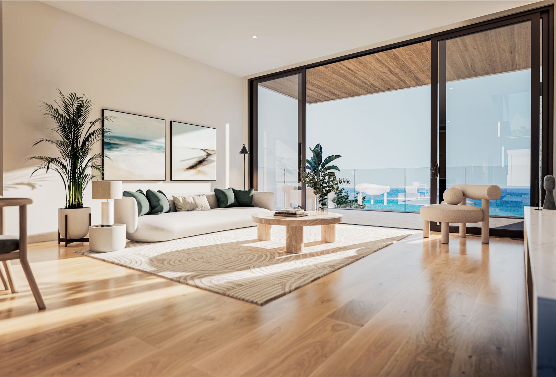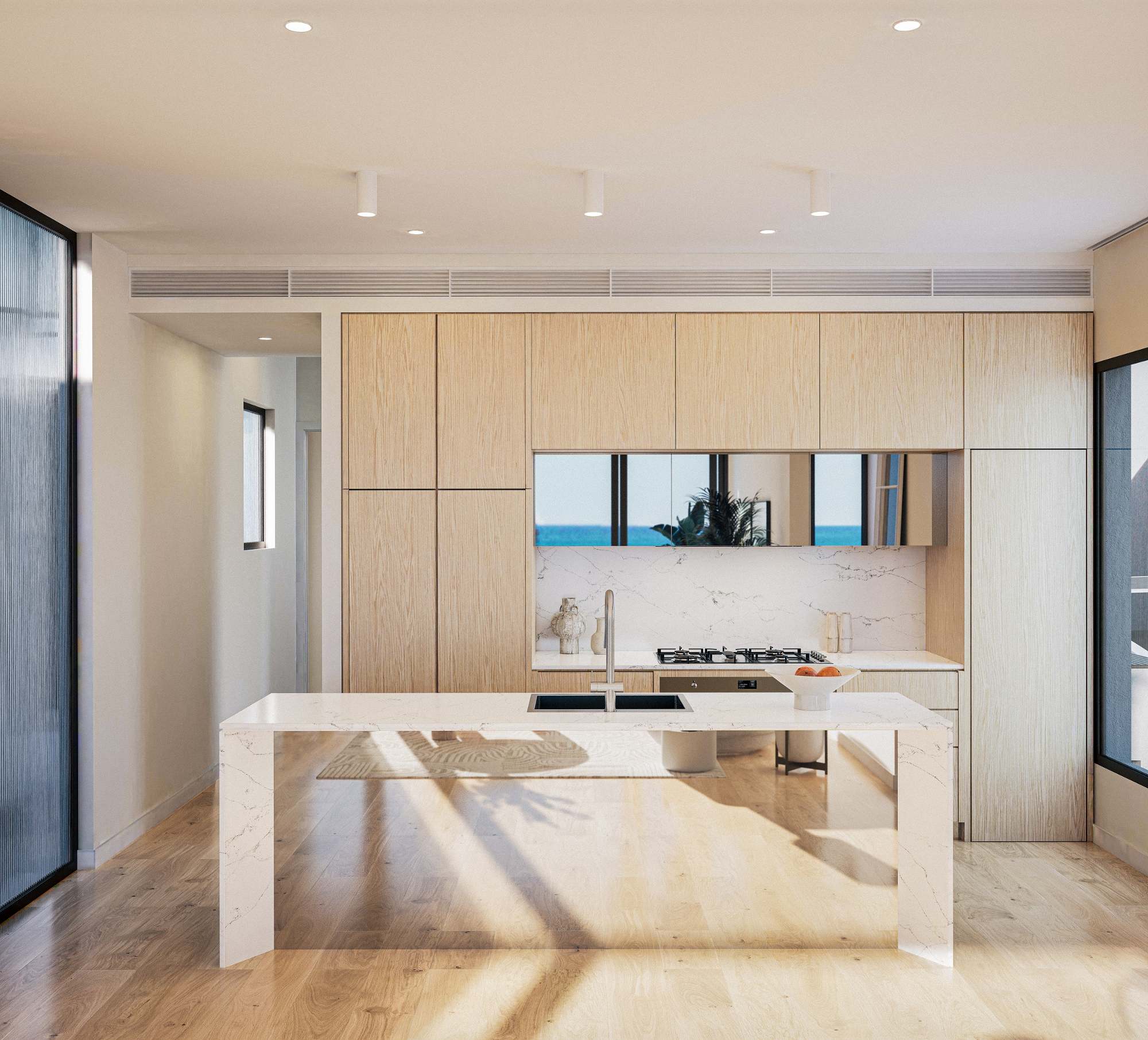 - Coastal inspired textures, materials and palette create a seamless transition between the exterior and interior spaces