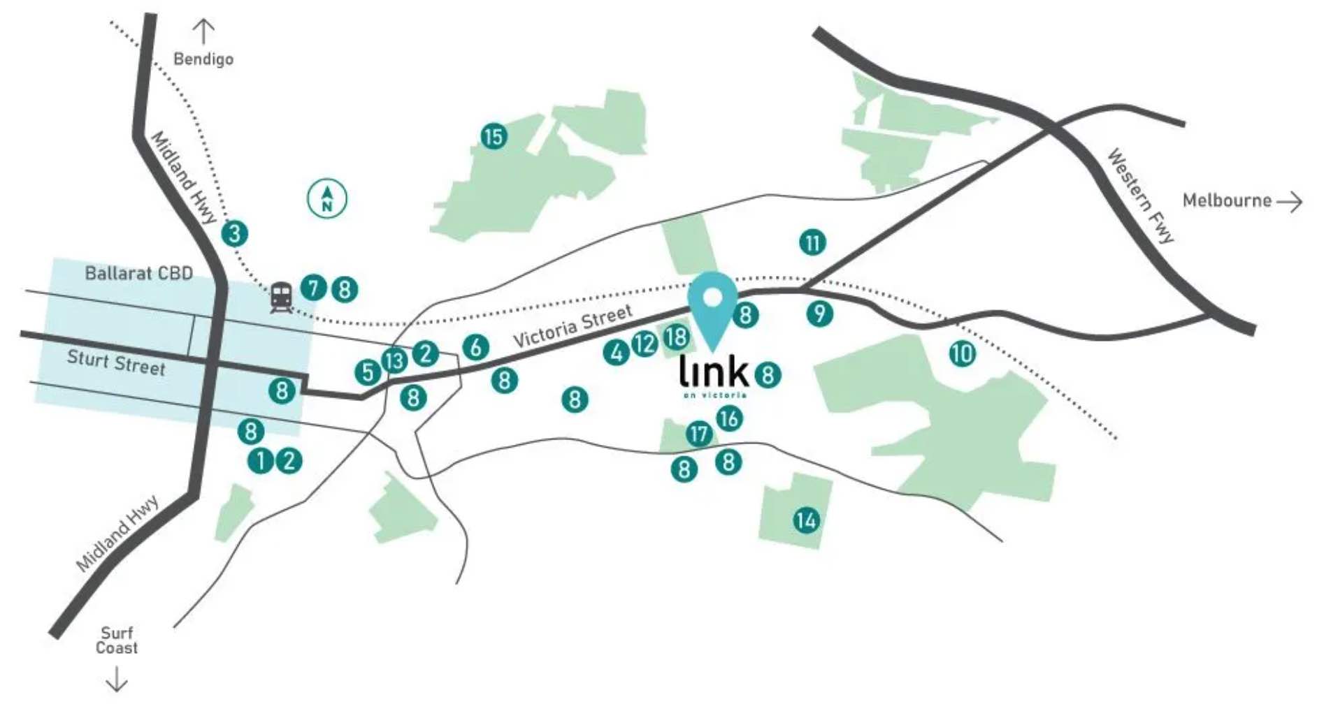| Distance to | Ballarat CBD - 4 km east Melbourne CBD - 99 km west |