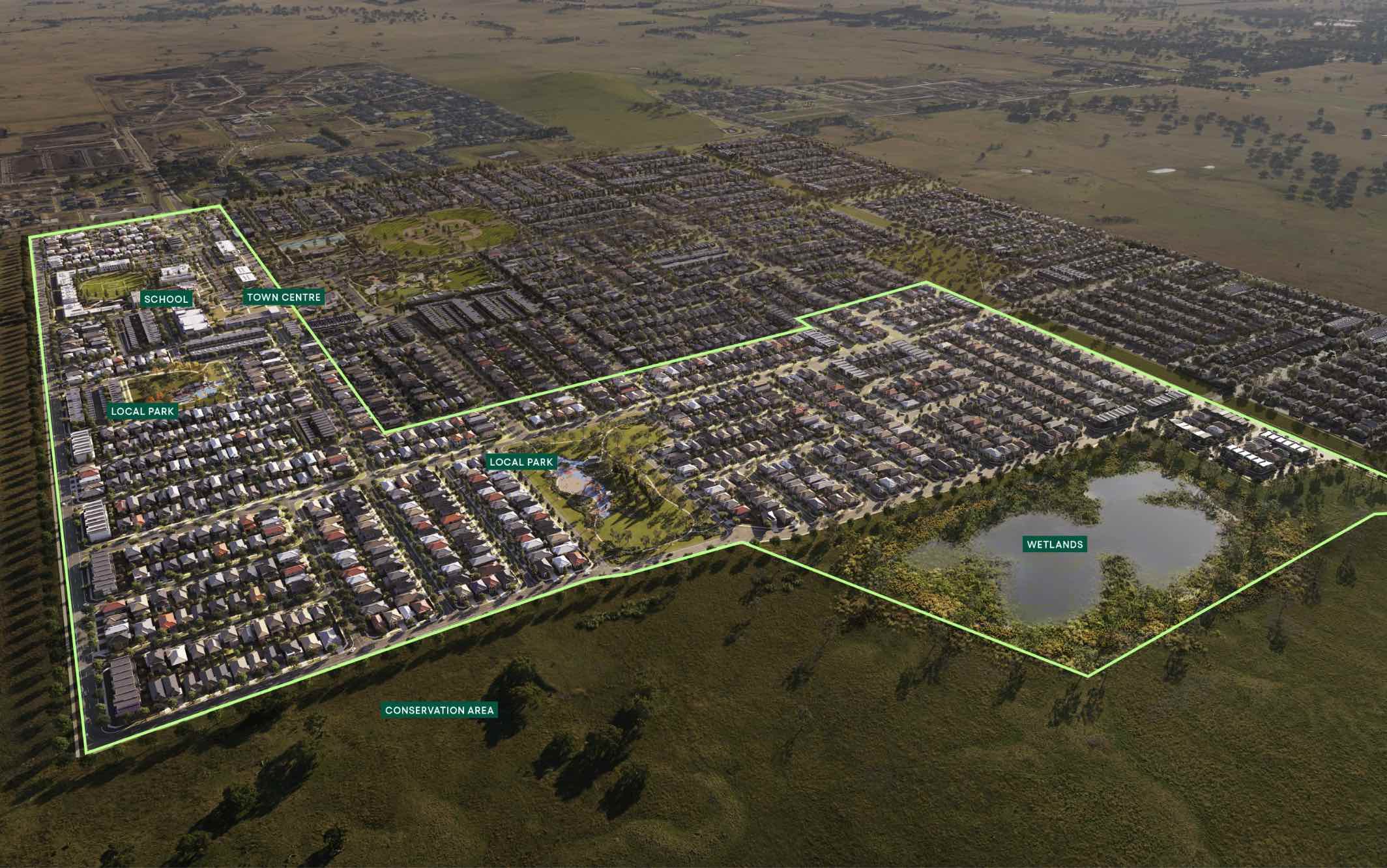 “Development will have a strong emphasis on the retention of natural features and high quality landscaping in an urban environment supported by strong connections to transport and community facilities. Development of the precinct will create a diverse mix of residential neighbourhoods linked by a variety of local town centres, schools and other community facilities.