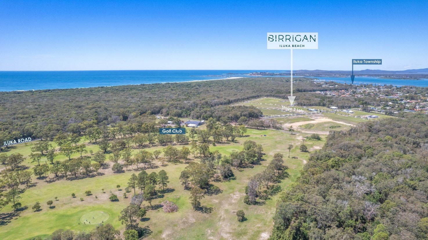 - Located midway between Coffs Harbour and the Gold Coast, Birrigan Iluka Beach offers an opportunity to create your own piece of paradise and live in one of Australia's most famous coastal areas. Easy access is available to the area's stunning natural features, such as white sandy beaches, rainforests, rivers and National Parks. The Iluka Golf Course adjoins the estate and the Iluka township and local primary school are within walking distance.