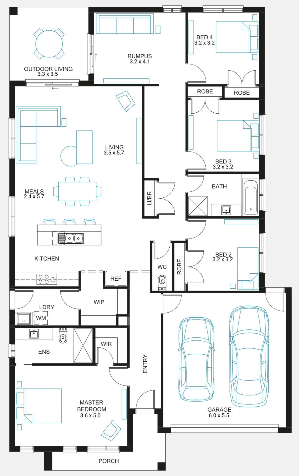 With it's mix of zoned and open spaces, you can have the best of both worlds with the Merbau home design. Showcasing a large private master suite at the front of the home, the rear of the home is dedicated to multiple entertainment options including open-plan living and kids zone with rumpus room.