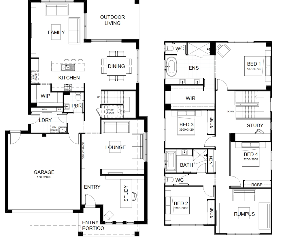 This dazzling 4 bedroom design showcases multiple living spaces ideal for both family fun and private moments, an upstairs rumpus room the kids can call their own, a master suite with a huge walk-in robe, and study areas on both levels. At the heart of it all, the entertainer’s kitchen is the hub around which the dining room, family room and outdoor living area are gathered. Contact us today to customise the Lennox home to you!