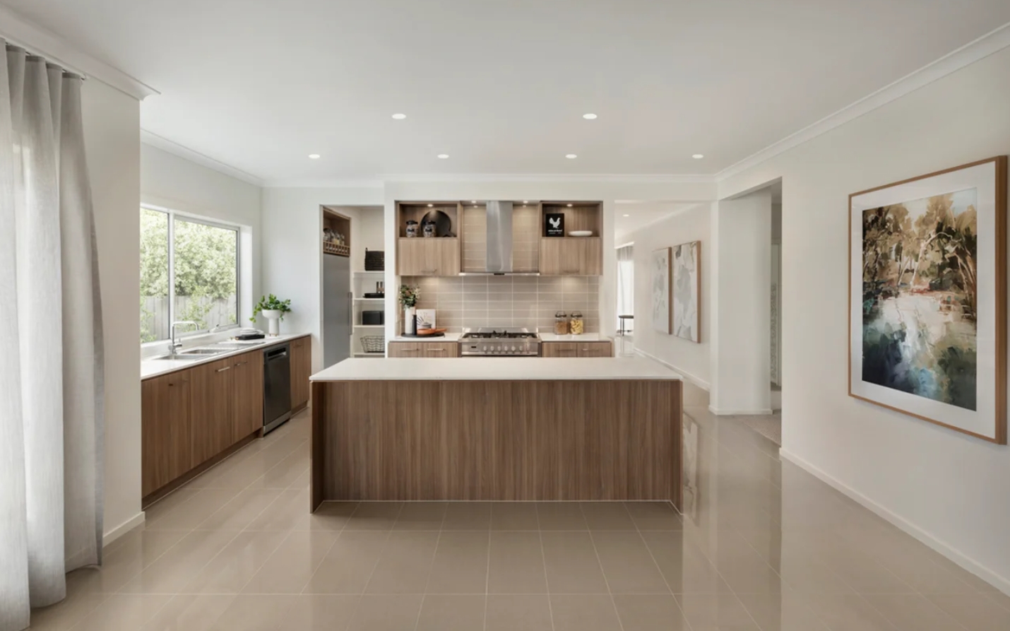 The Pasadena will delight any family with its abundance of living space. The dedicated sleep zone, with the master suite to the rear and unique study nook, perfectly balances the central living hub with kitchen, grand pantry and living flowing out to a co