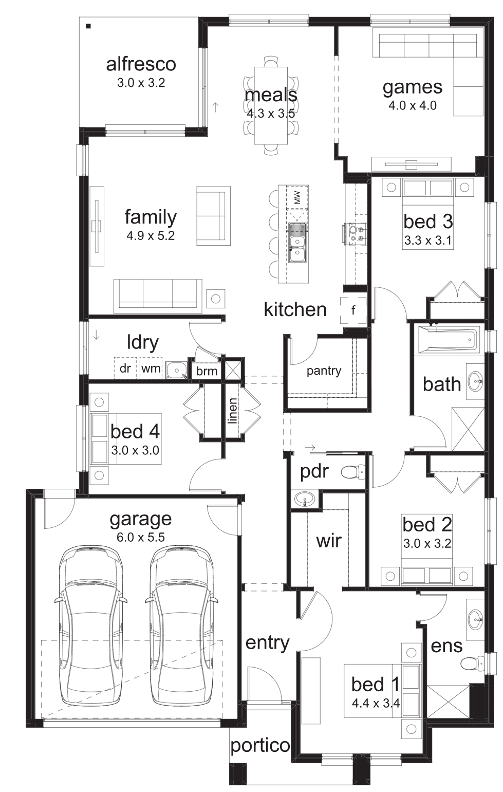 Available in four size options, the Venetia design alters according to the width of your block. Progressing from a three bedroom base, the three larger size variations include four bedrooms and the addition of a games room. With living solutions for every family, the fun times never stop in the Venetia.