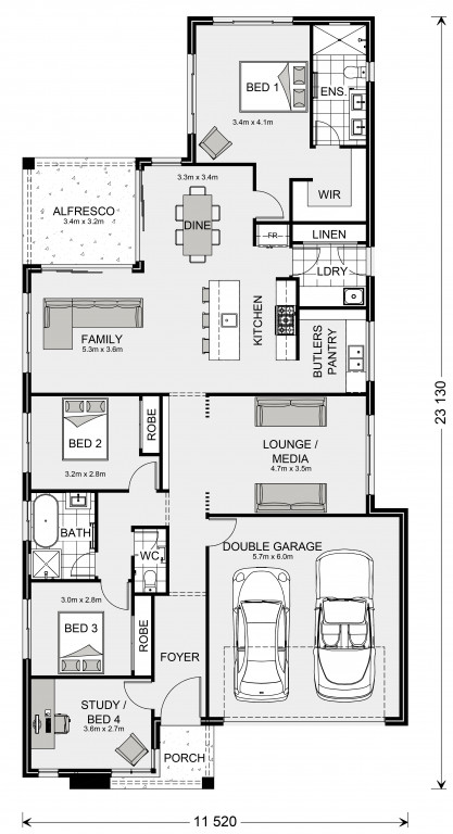 Featuring a well thought out open plan living area with kitchen and butler’s pantry, family and dining spaces making effortless connections to the outdoor covered alfresco and a formal lounge area. With multiple living areas, options of space, privacy and endless additions for functional entertaining is easy.