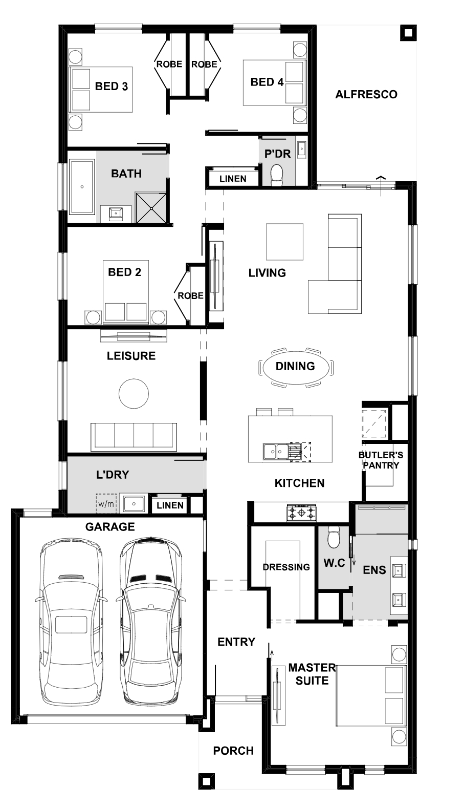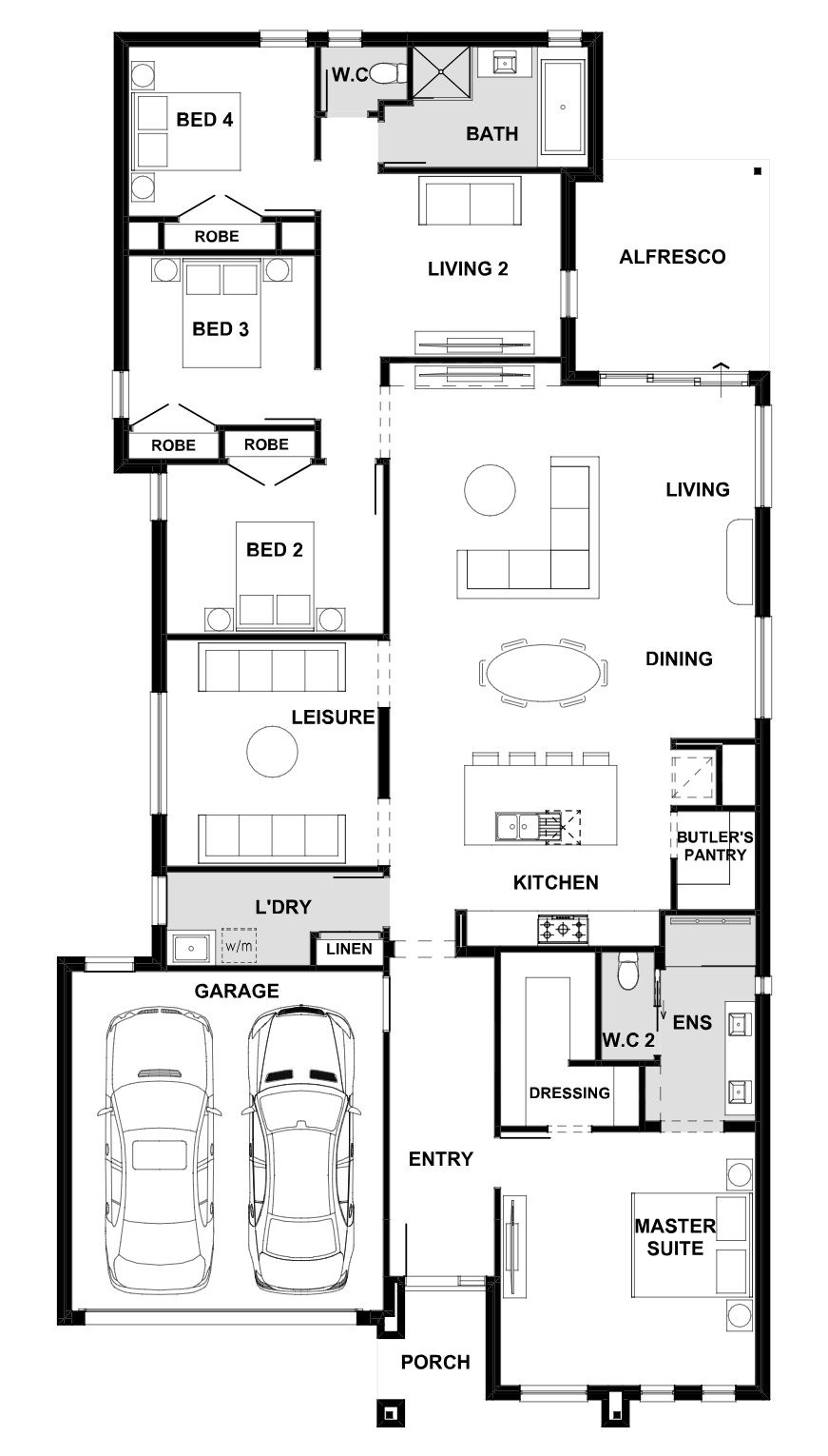 The Monaco series centres around the expansive open plan entertaining zone being the heart of the home.