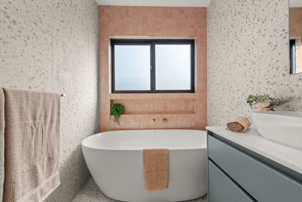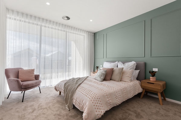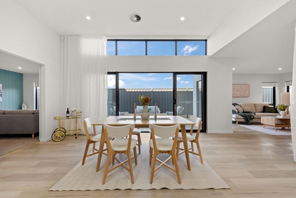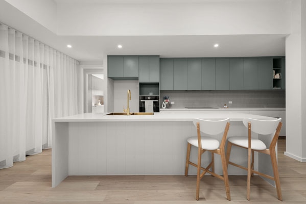 The Capri features a segregated master bedroom with floor to ceiling windows drawing in an abundance of natural light. A modern, large kitchen area includes brushed brass finishes, stone benchtops and soft close drawers and doors. It is accompanied by an extra large dining space, with a design that is an entertainers dream. The Capri also includes three generous sized bedrooms with built in robes, as well as a two person study space for those working or studying from home. Positioned on just 479 square metres of land, this home has been carefully designed to feel spacious and include necessities while also remaining inside the building envelope.