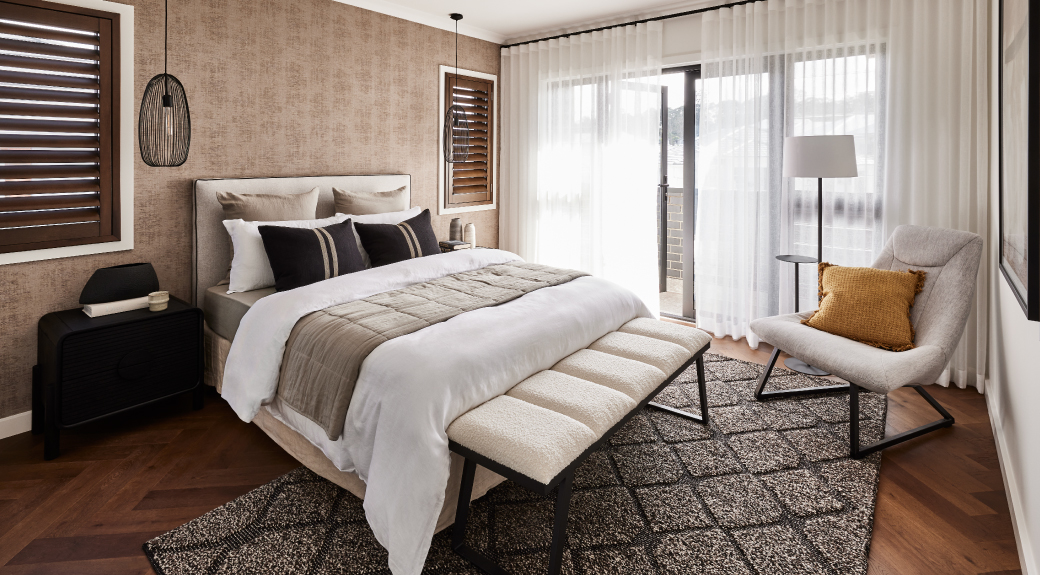 The master bedroom in this two storey design has its own private balcony accessible by gorgeous French doors. It also features a walk-in wardrobe and ensuite. The other three bedrooms have built-in wardrobes and are close to the main bathroom and upstairs lounge area, an ideal hub for relaxing or even gaming.
