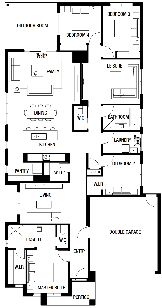 The all-new 4-bed Seaton packs a massive amount of home onto a 12.5m x 28m block (the most popular modern land size) and is an exclusive design for our breakthrough HomeSolution range. With many of the features normally only found with larger and more expensive designs, this brilliant new home also offers you a parents retreat/study/home office, a separate lounge, as well as an indoor-outdoor room, walk in pantry and laundry, and a magnificent integrated living hub with a gleaming kitchen. And the front-facing Master suite is simply ‘to die for’. In summary, this is a whole lot of living that won’t break the bank.
