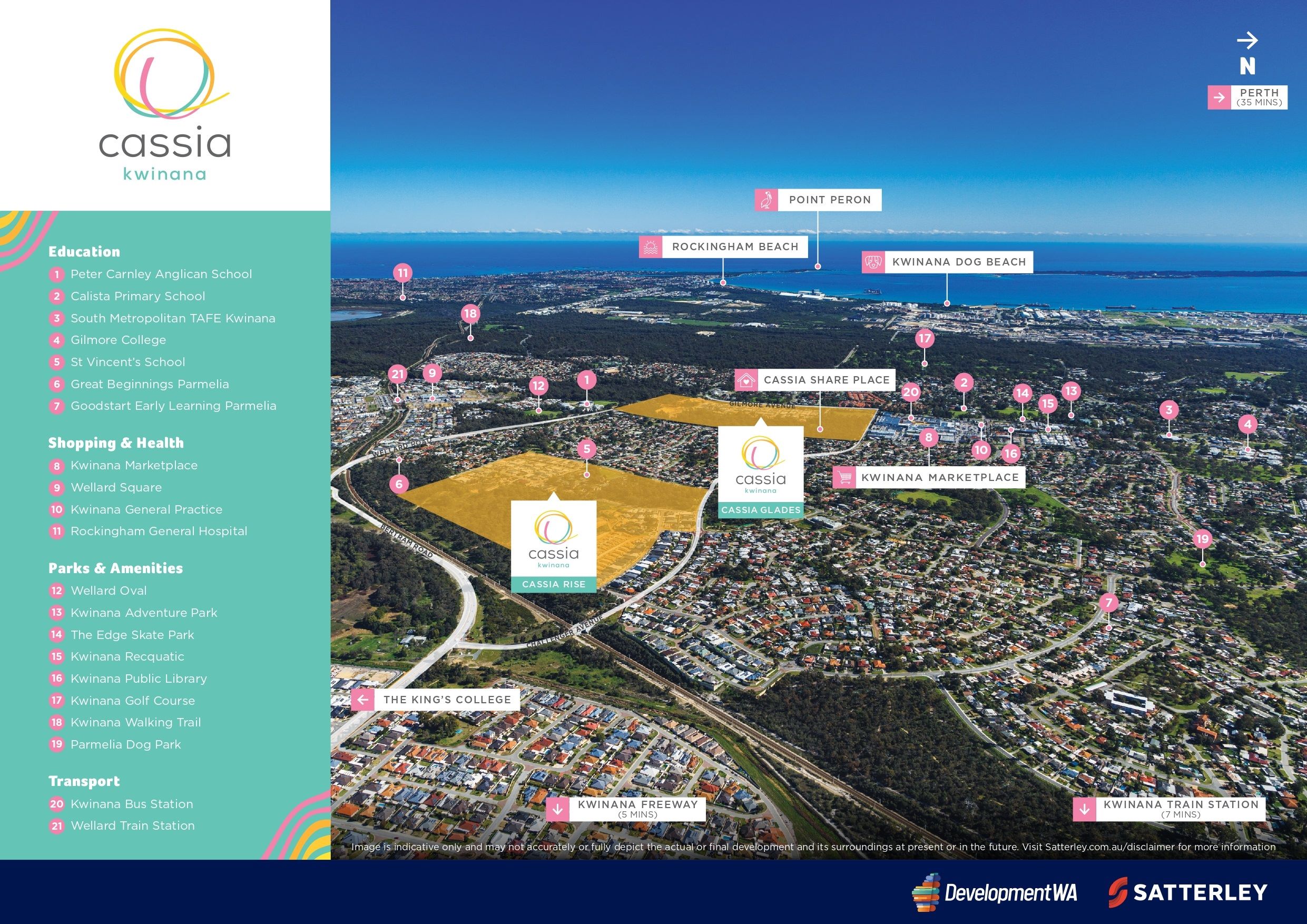 - Cassia keeps you close to everything you need, with schools, childcare centres, shopping and recreation opportunities all close by. The Kwinana Train & Bus Station is within easy reach, perfect for the daily commute or weekend day trip.