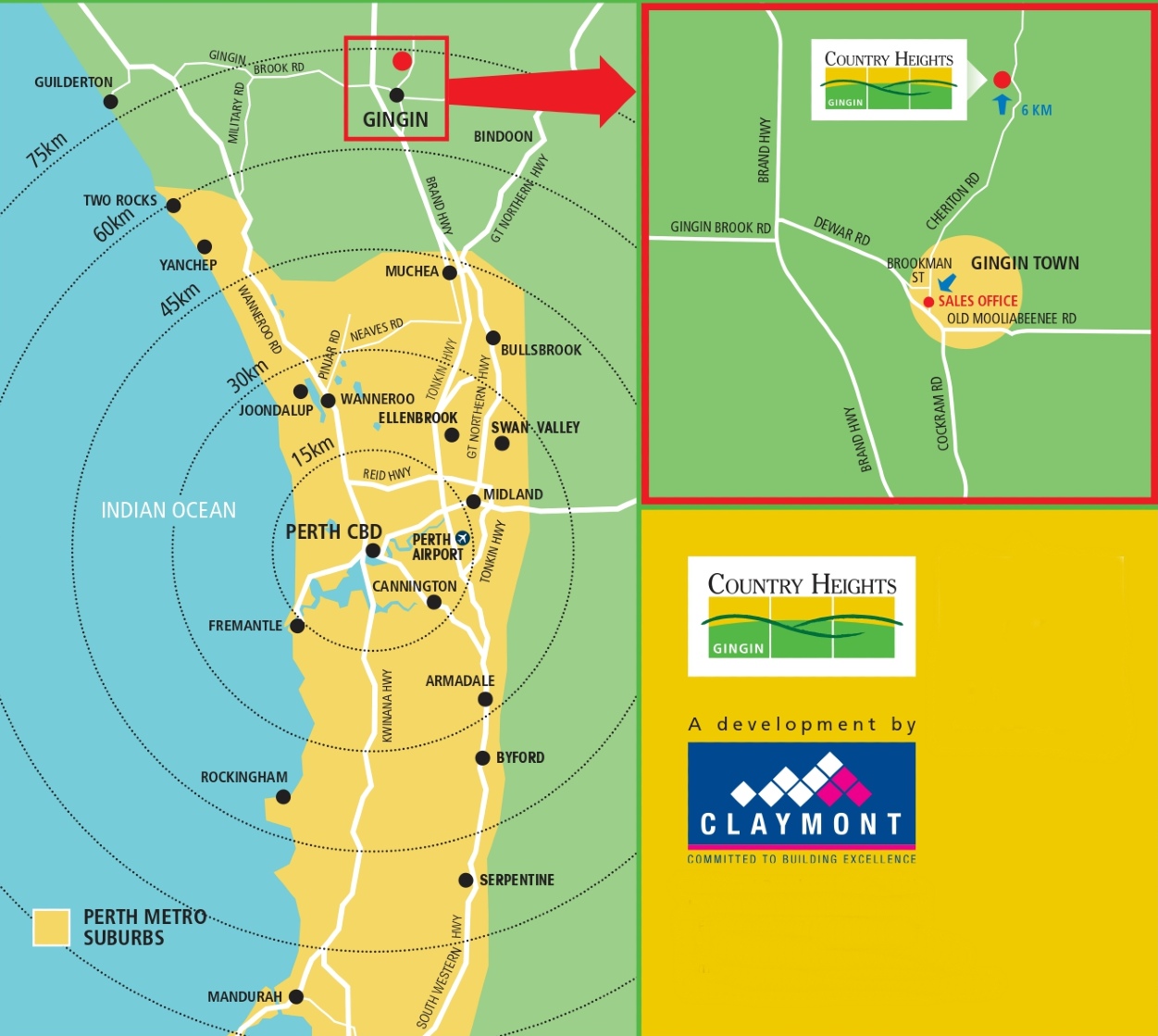 | Distance to | Perth CBD - 75 km north |