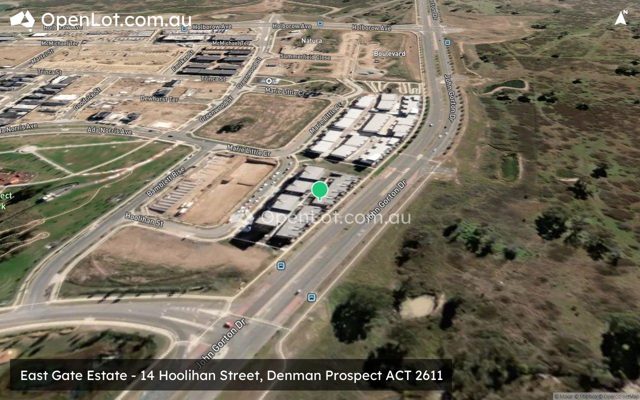 The John Gorton Drive provides access to the entire suburb, providing the north-south connection along the eastern boundary. Holborrow Avenue and Ada Norris Avenues provide east and west connections from John Gorton Drive to provide local road networks throughout Denman Prospect.