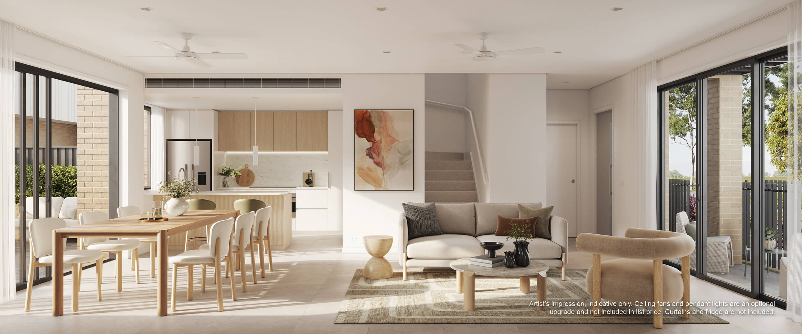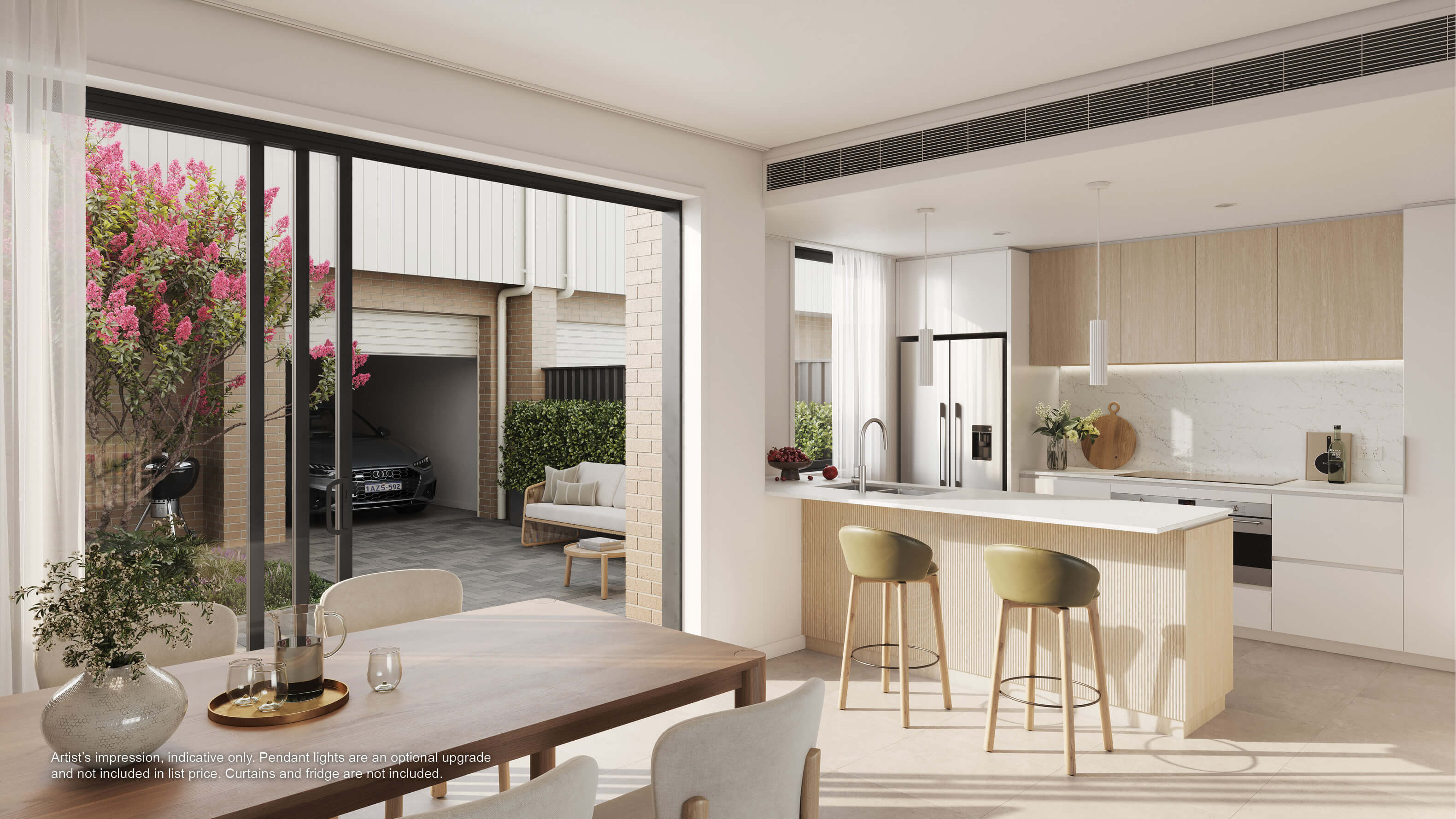 - Modern floor tiles to entry, living and dining room
