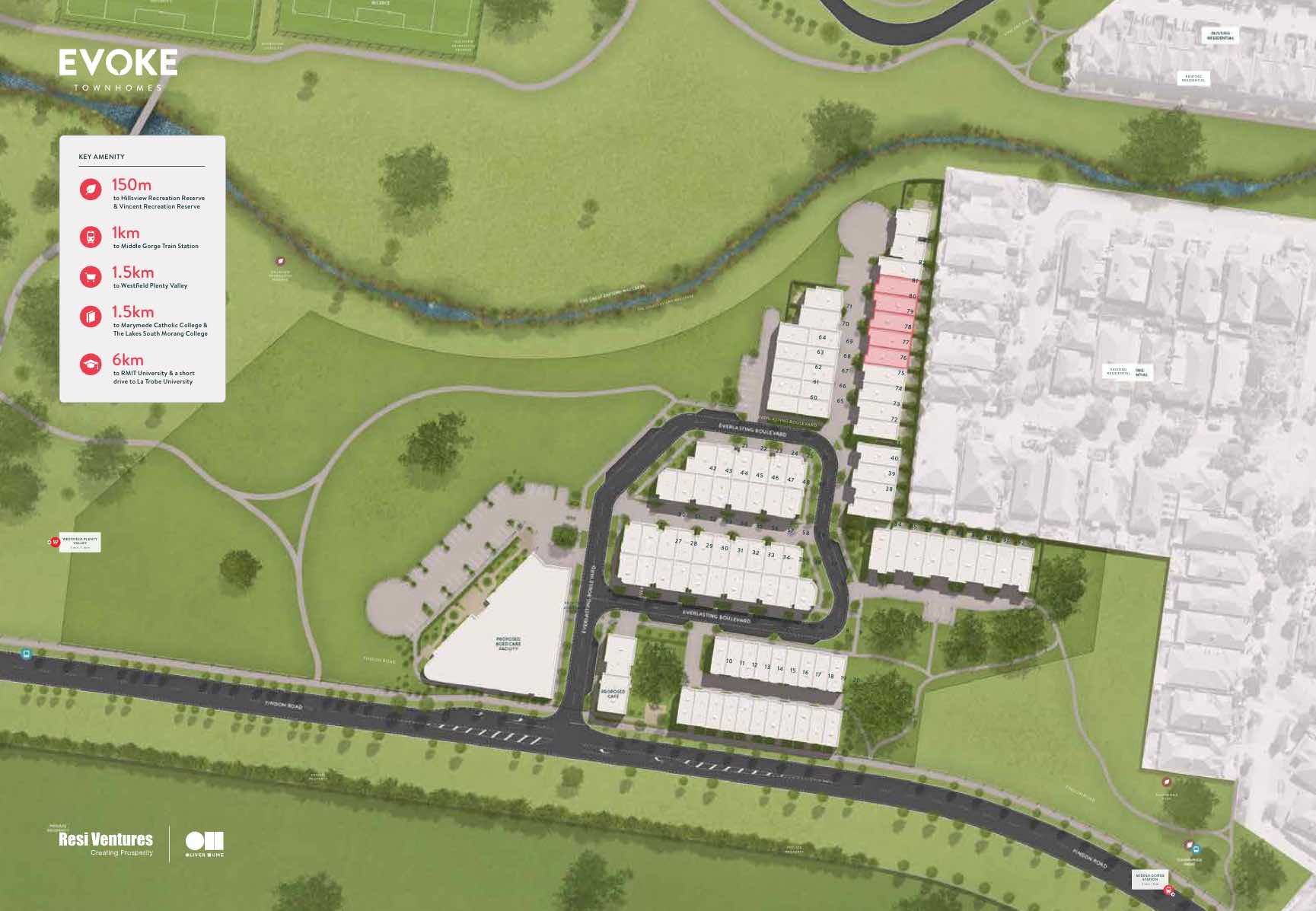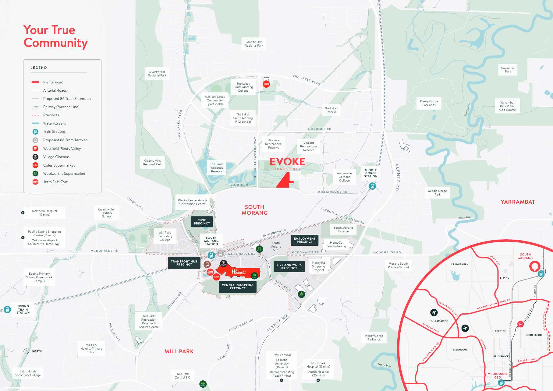 - Surrounded by flourishing reserves Evoke offers a true urban living experience with convenient proximity to Westfield Plenty Valley, education facilities and transport.
