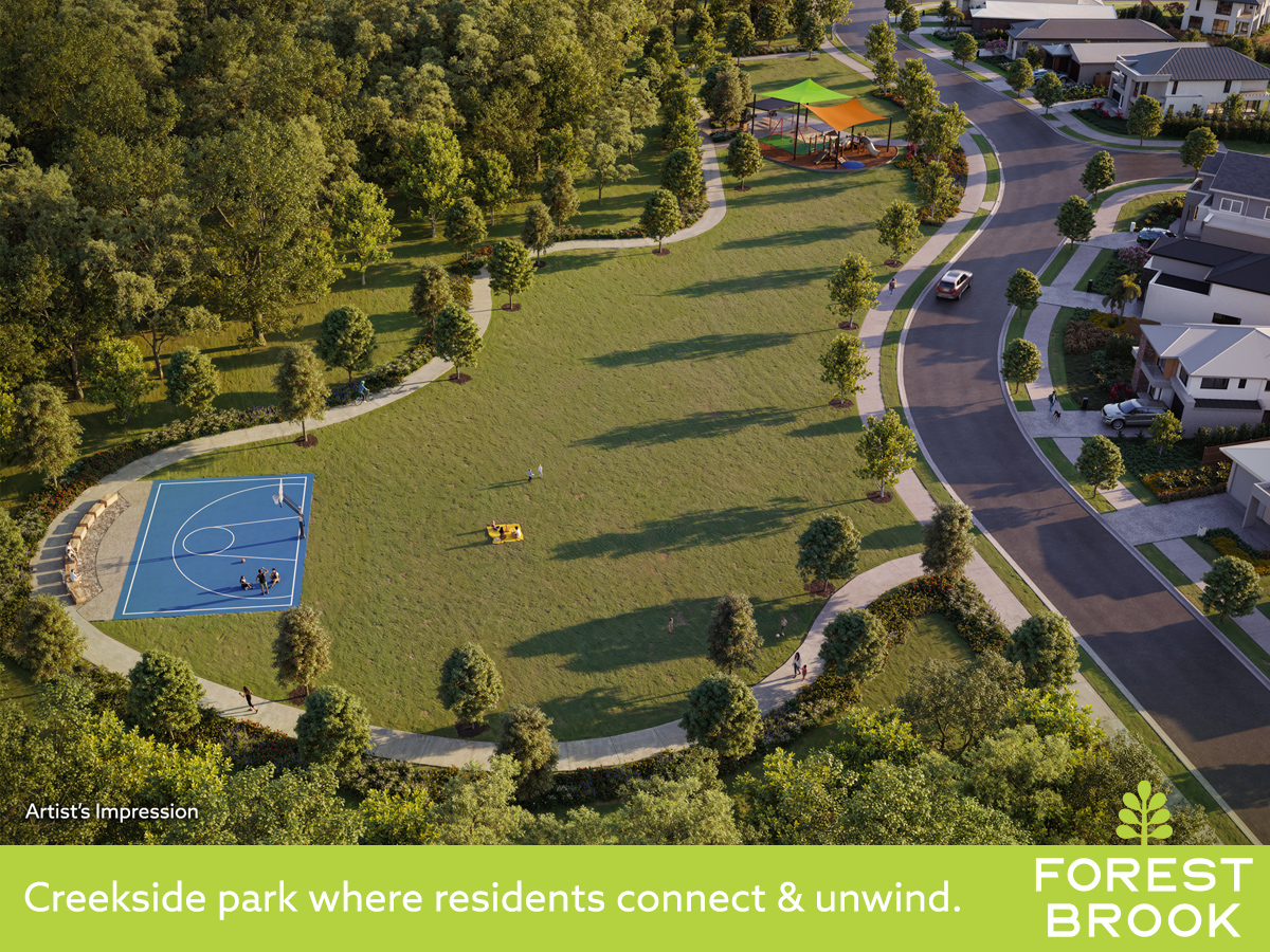 - Expansive, 12ha creekside parklands with mature trees, meandering paths, playground and half court.