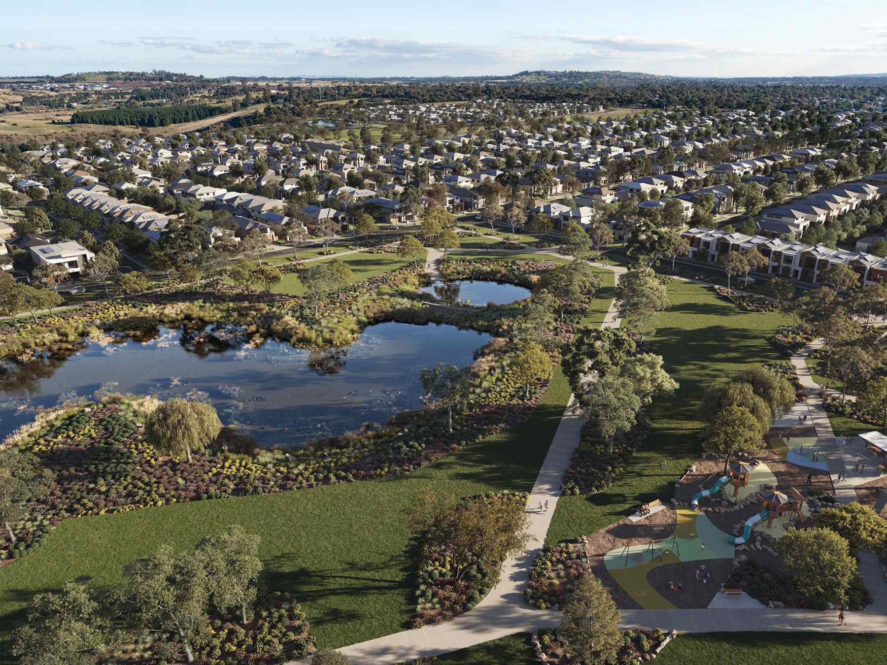 “Sunbury and Diggers Rest will develop as a highly attractive and liveable regional city linked to but distinct from the metropolitan area. Its distinctive creek environs, hills and rural hinterland provide an attractive landscape setting for the township, which will be maintained and enhanced. The environmental and cultural heritage values of Jacksons and Emu Creeks will be protected and enhanced, and community access to these areas will be improved over time.
