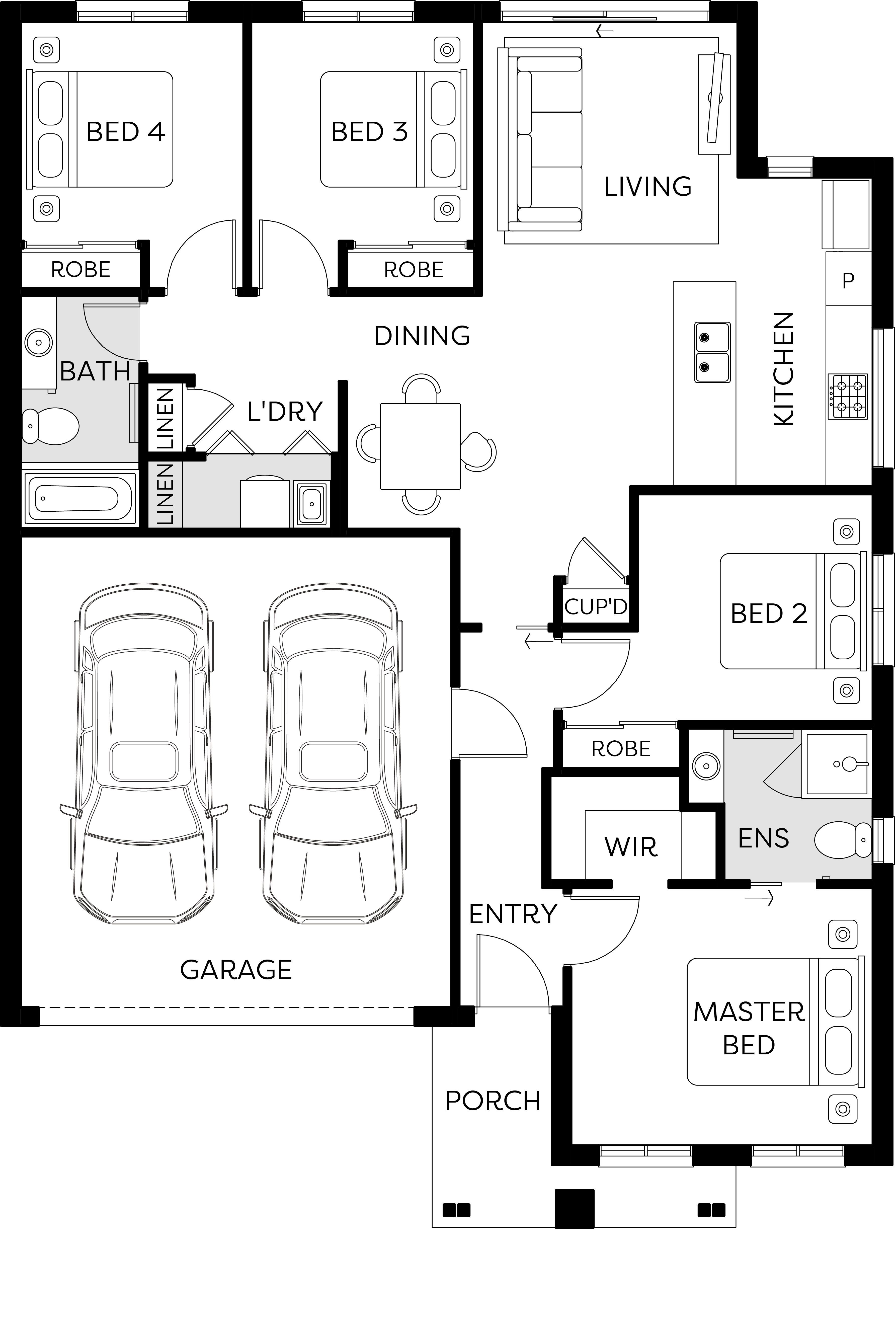 2Home features winged bedrooms for privacy and plenty of room in the kitchen with a walk-in pantry which will satisfy any aspiring chef in the family. Additionally, there is an office allowing you to work comfortably from home. This design has been created for the first home buyer in mind giving them everything they’re looking for in a first home.