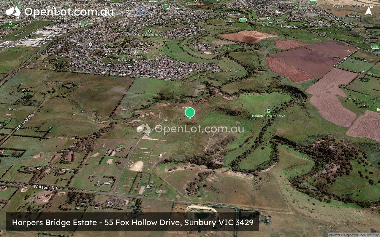 The suburb boundary is located along Jacksons Creek corridor to the North, with Emu Creek and Lancefield Road making up the eastern boundary. Watsons Road and Jacksons Creek provide the small southern boundary, with property boundaries and Calder Freeway providing the western boundary.