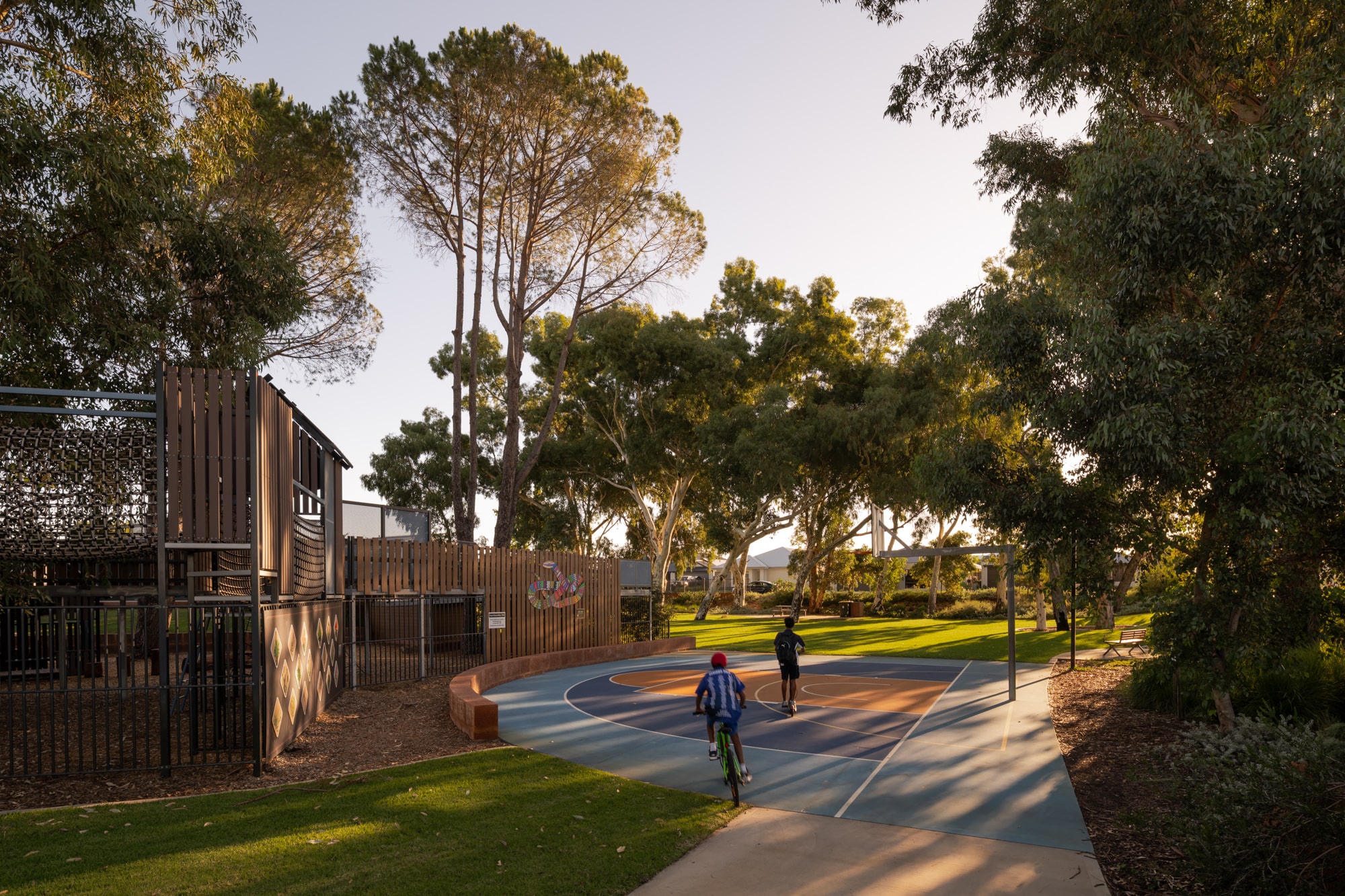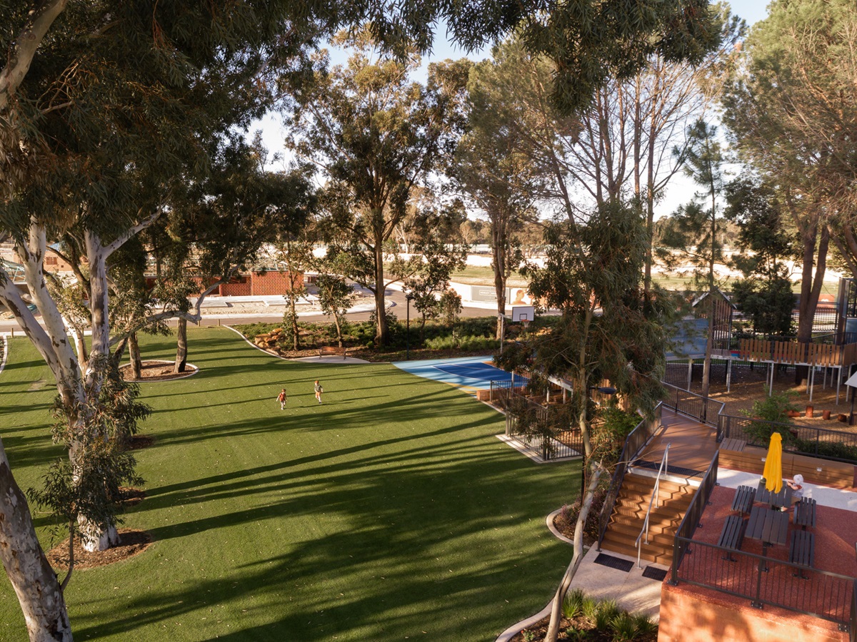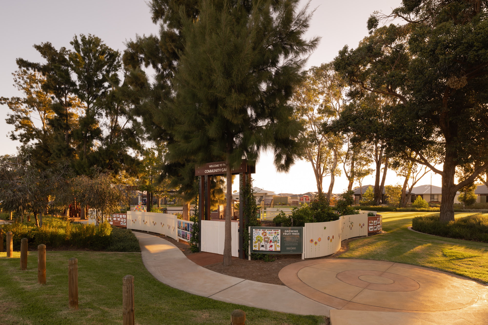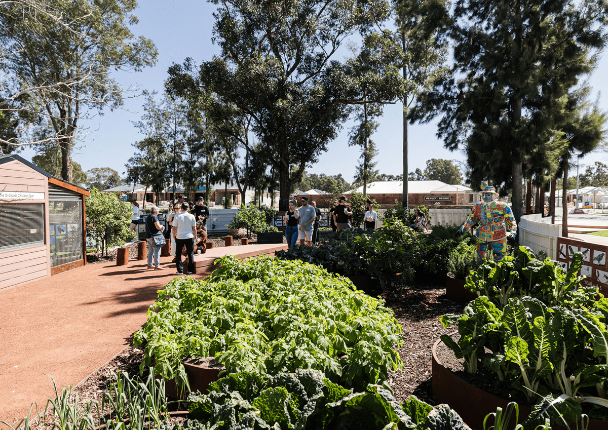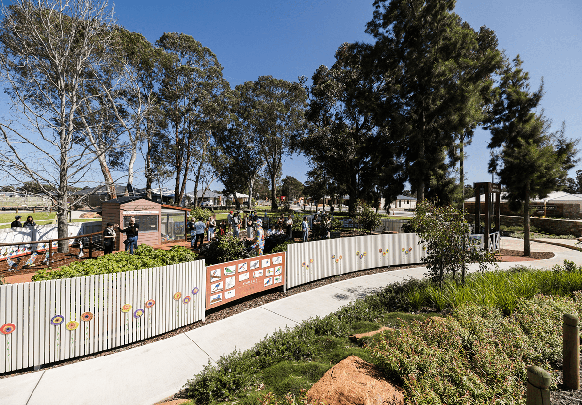 - Beautiful artwork from the Moorditj Noongar Community College is showcased throughout the orchard, as part of their second series. These creations celebrate the rich cultural heritage of the area and will remain a lasting feature within this vibrant community space.