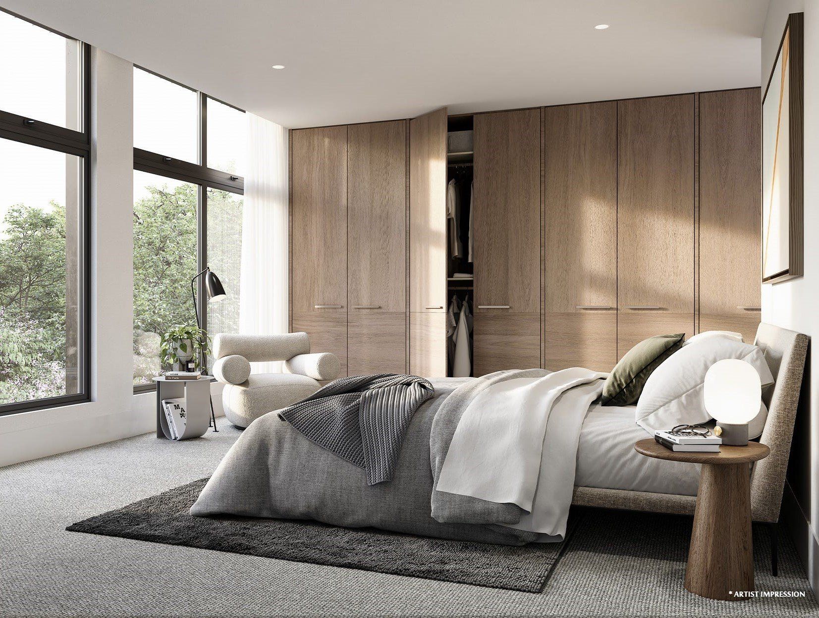 Generous two, three and four-bedroom, double–storey townhouses feature generous front door access and internal garages. Floor-to-ceiling windows overlook tree-lined, pedestrian-friendly streets and invite light and warmth in.