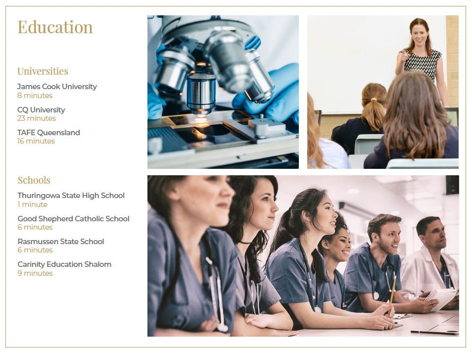 - Excellent education options from Child care through to University