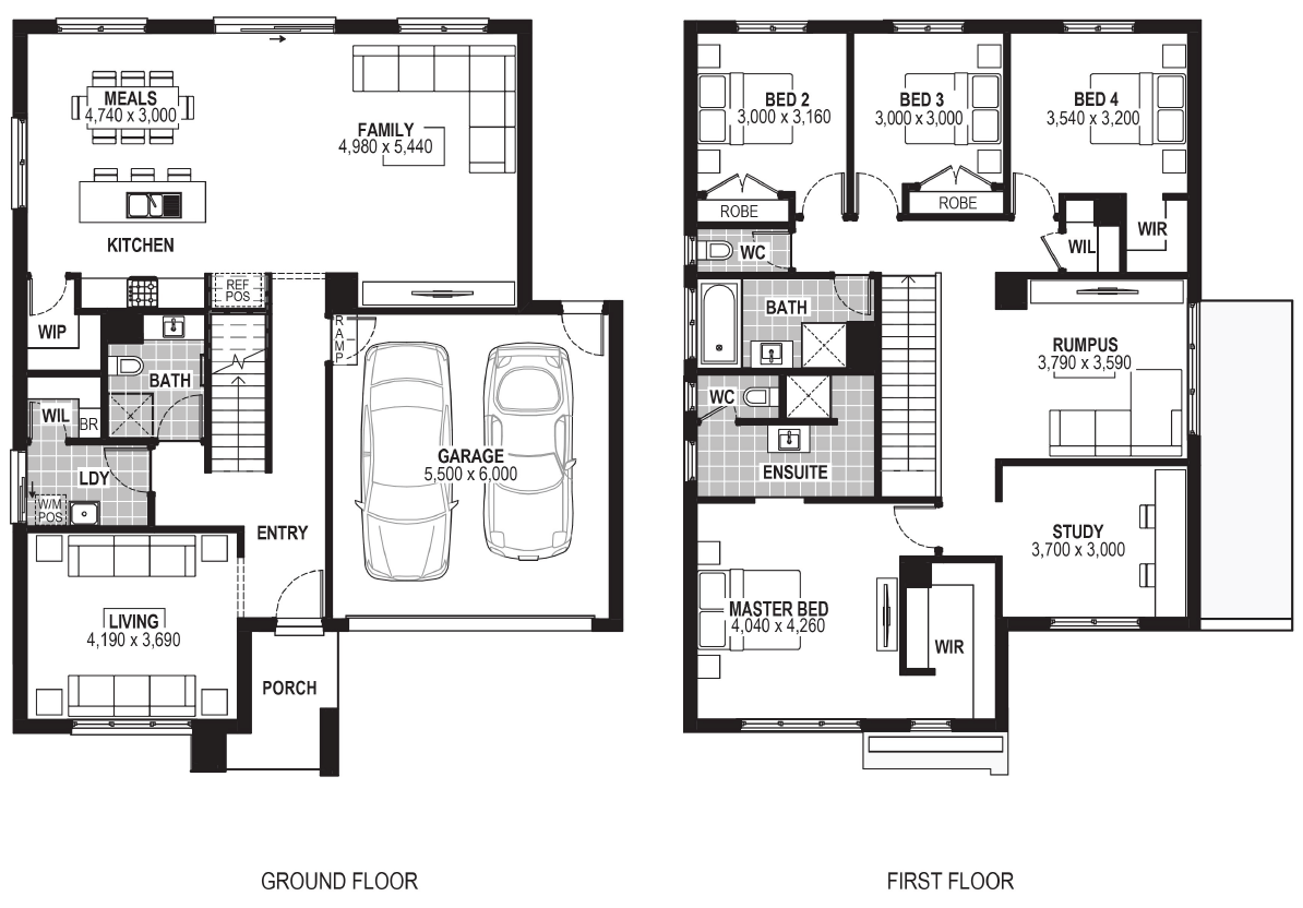 2570mm high ceilings to single storeys and ground floor of double storeys