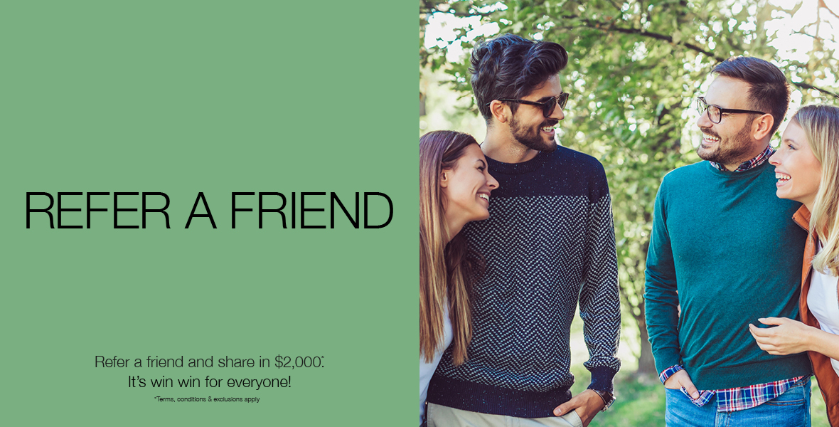 - Refer a friend and share in $2,000! *Terms, conditions & exclusions apply.