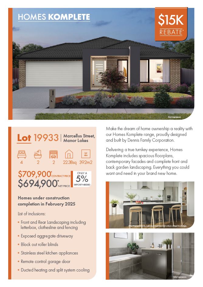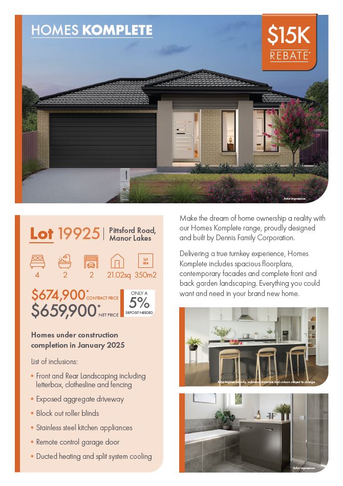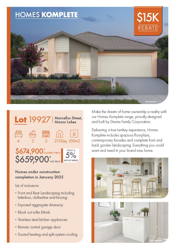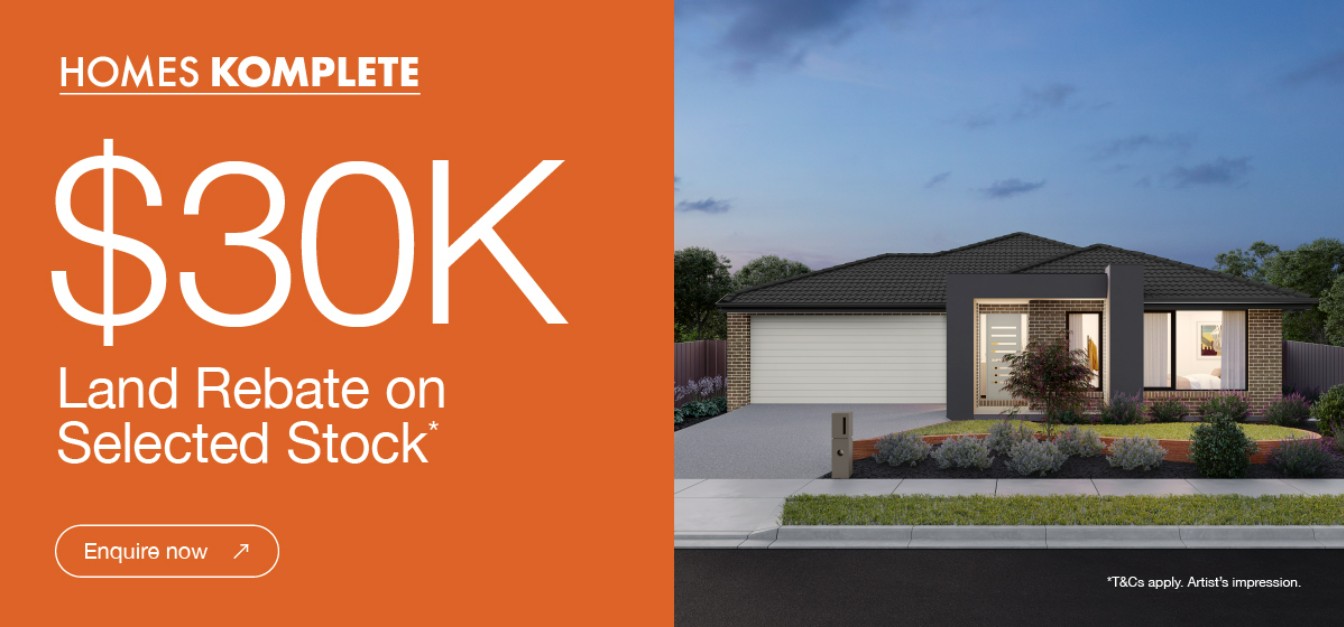 - Get a $30k Land Rebate on Selected Stock* with Homes Komplete