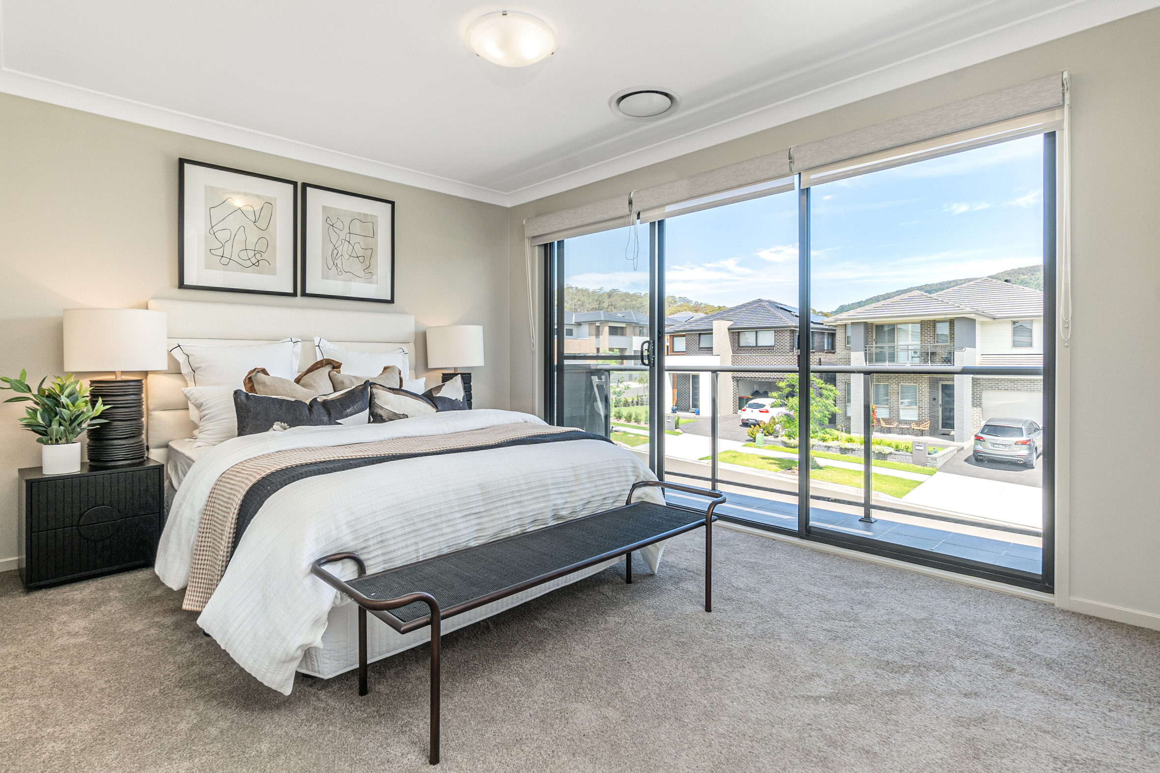 • Flyscreens to all windows and sliding doors, block out blinds throughout, and light filtering blinds to front elevation