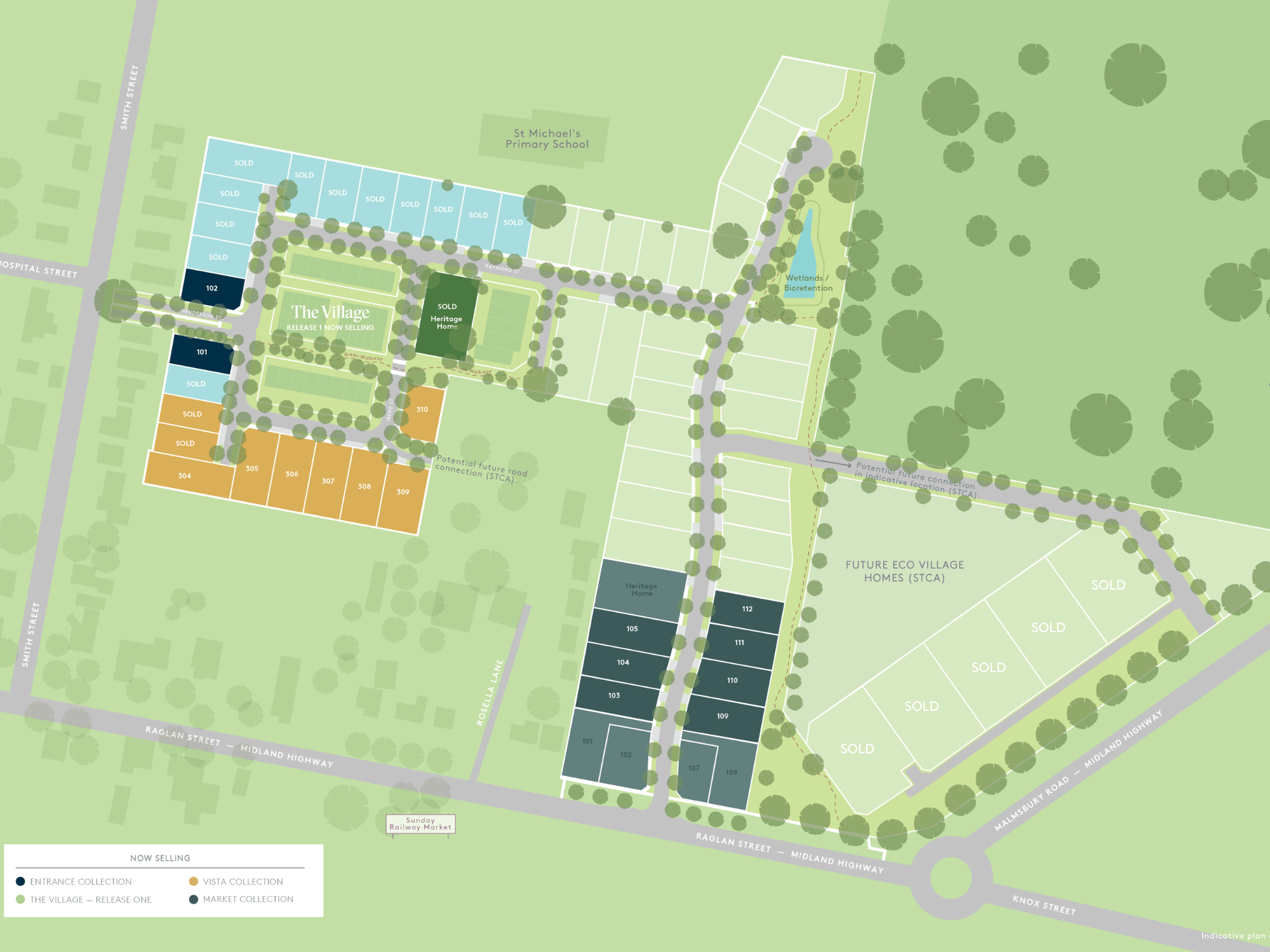 - Market release - ideally located homesites 3 minutes from popular Sunday market.