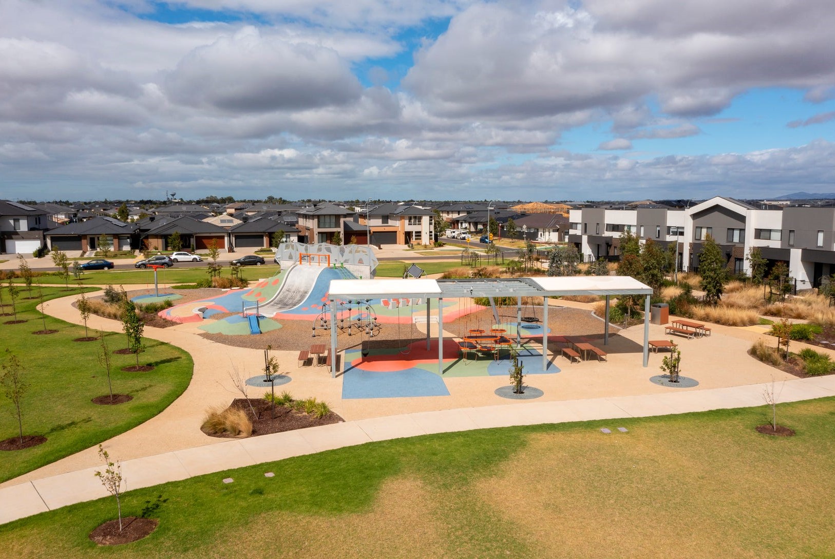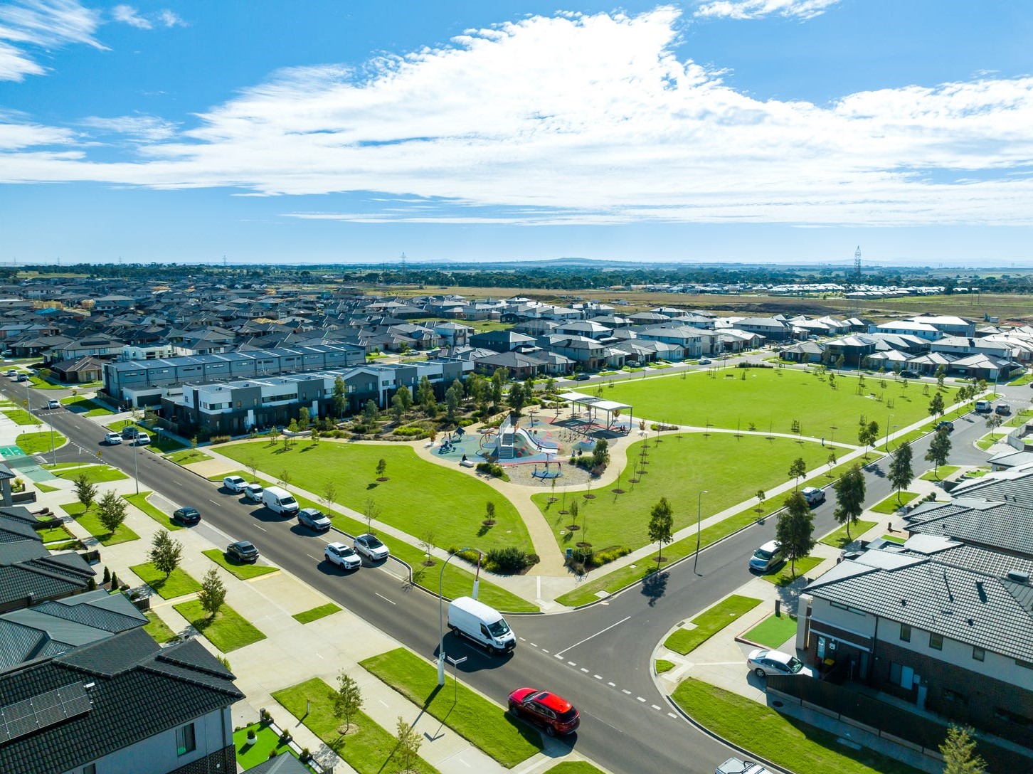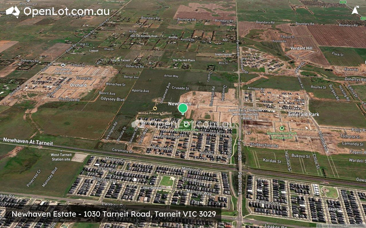 The updated Newhaven Masterplan has expanded to include an additional 53 hectares along Leakes Road. It encompasses four parks and playgrounds, with two already open, Wimba Primary School, future wetlands and waterway, proposed 10-hectare sports grounds, a town centre, and the proposed Tarneit West Train Station (planned to open in 2026).