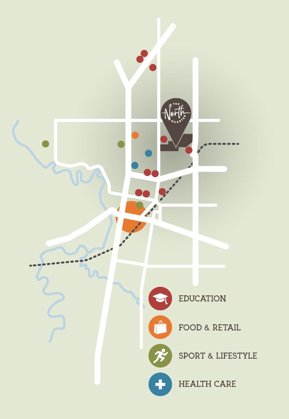 - The North Quarter’s central location means you're only a walk, ride, or jog away from parks, playgrounds, schools, and the cities best sporting facilities. A short 5-minute drive will have you at the city center’s cafe's, restaurants, and shopping.