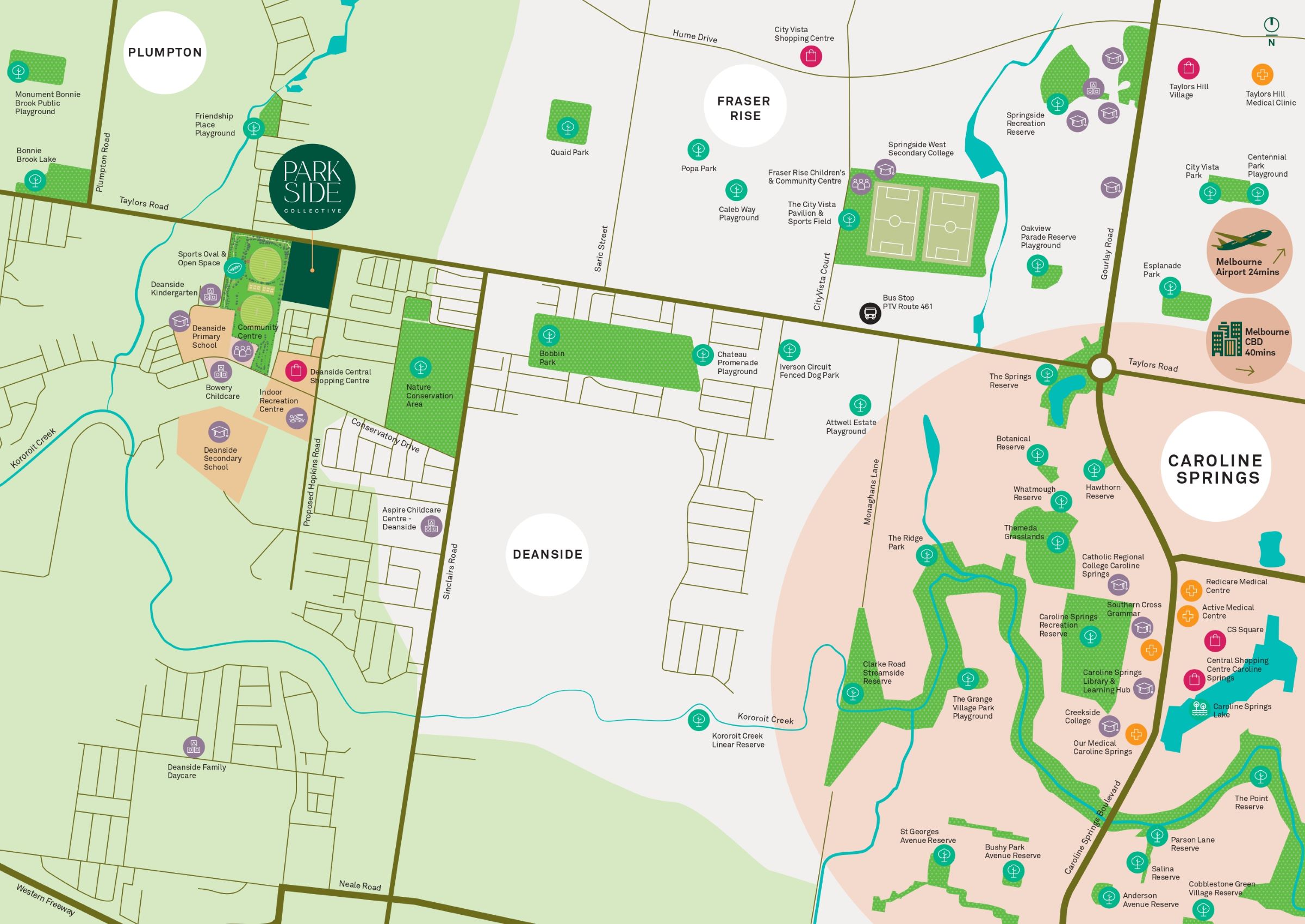 Introducing Parkside Collective Deanside. Located just 40 minutes from Melbourne’s CBD, this vibrant new community will offer a lifestyle of quality, compact and convenience for those fortunate enough to call it home.