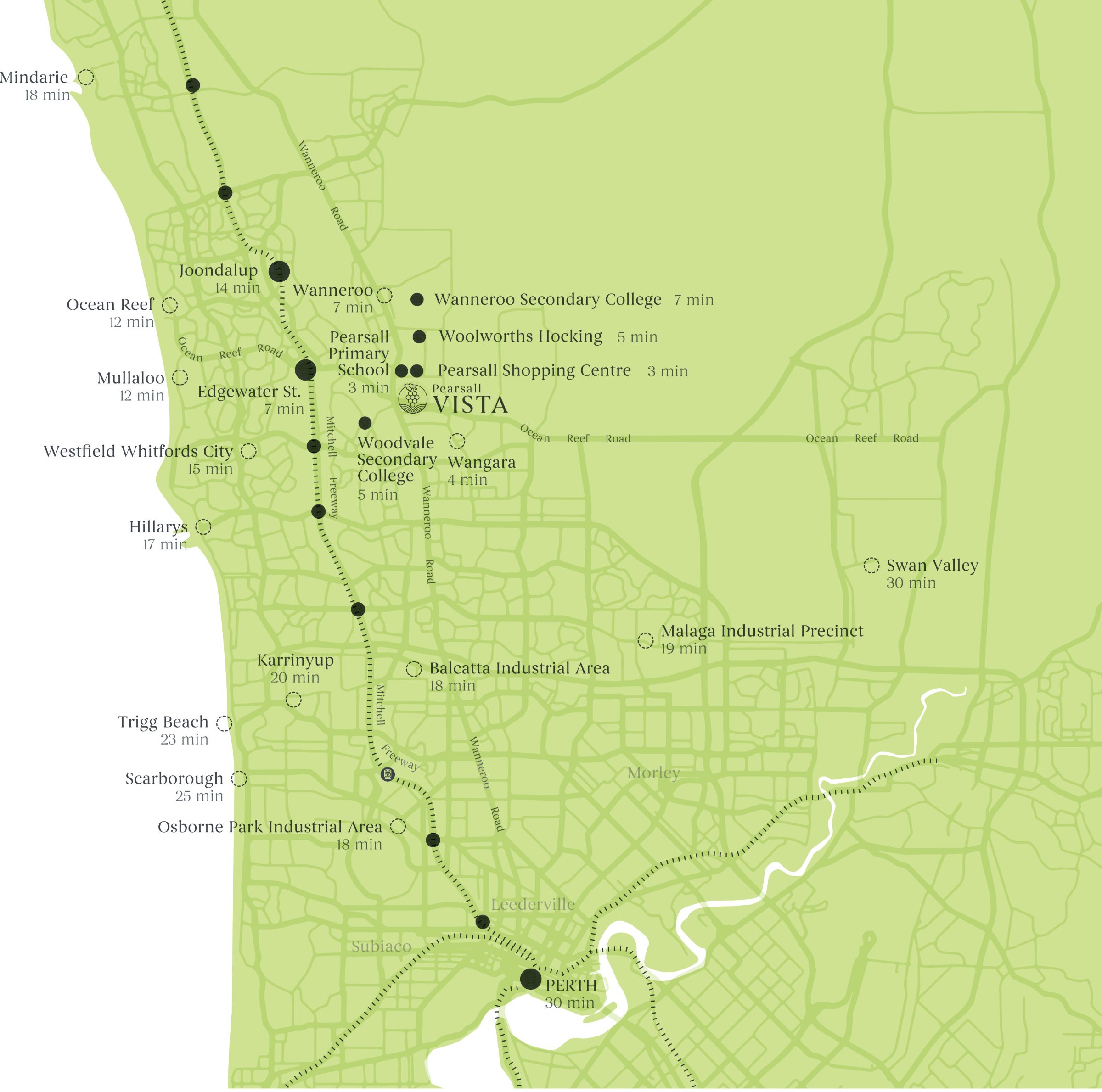 | Distance to | Perth CBD - 19 km north Perth Airport - 22 km north-west |