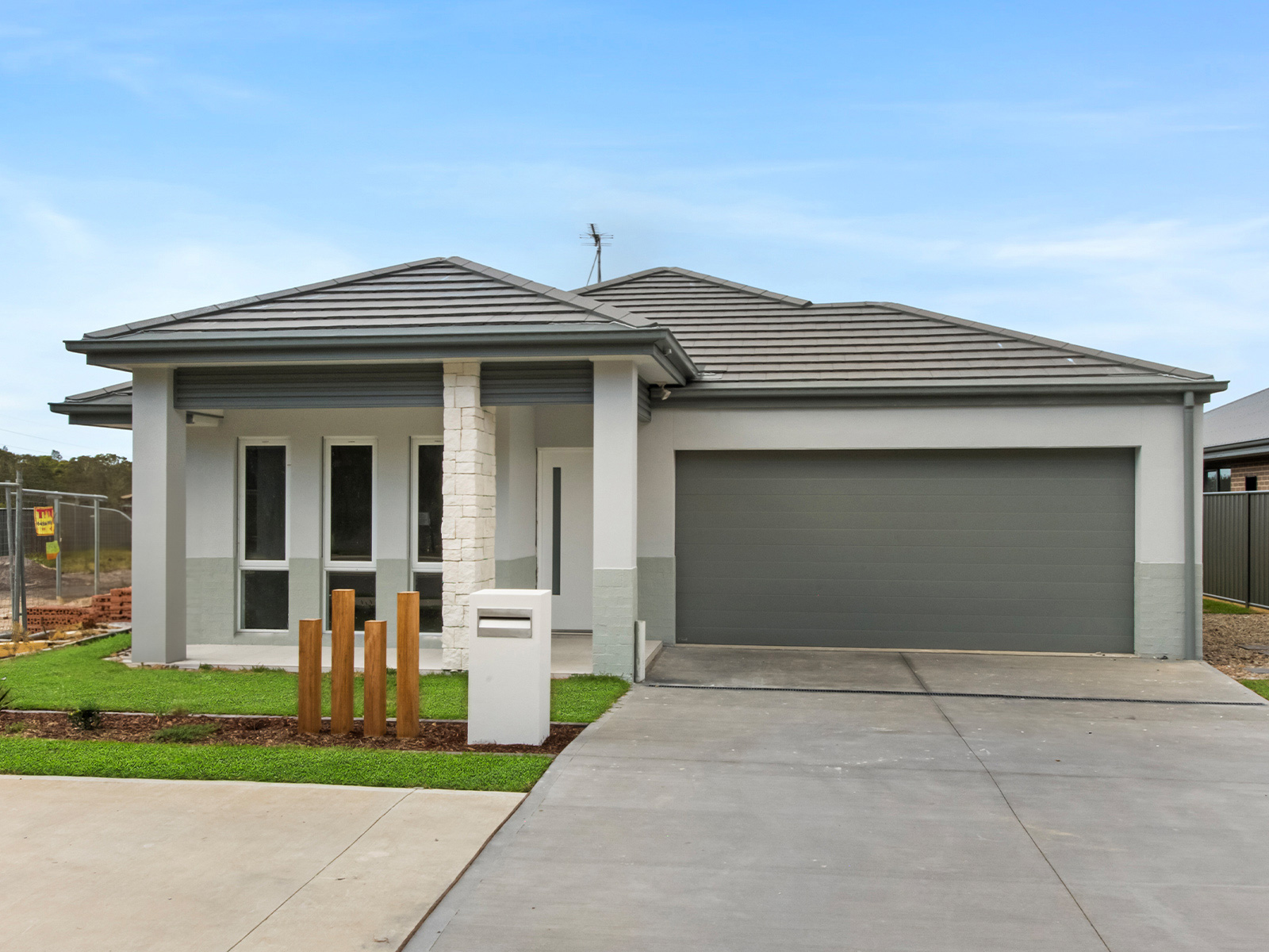 Colorbond fencing and fully landscaped, including driveway, letterbox, and clothesline