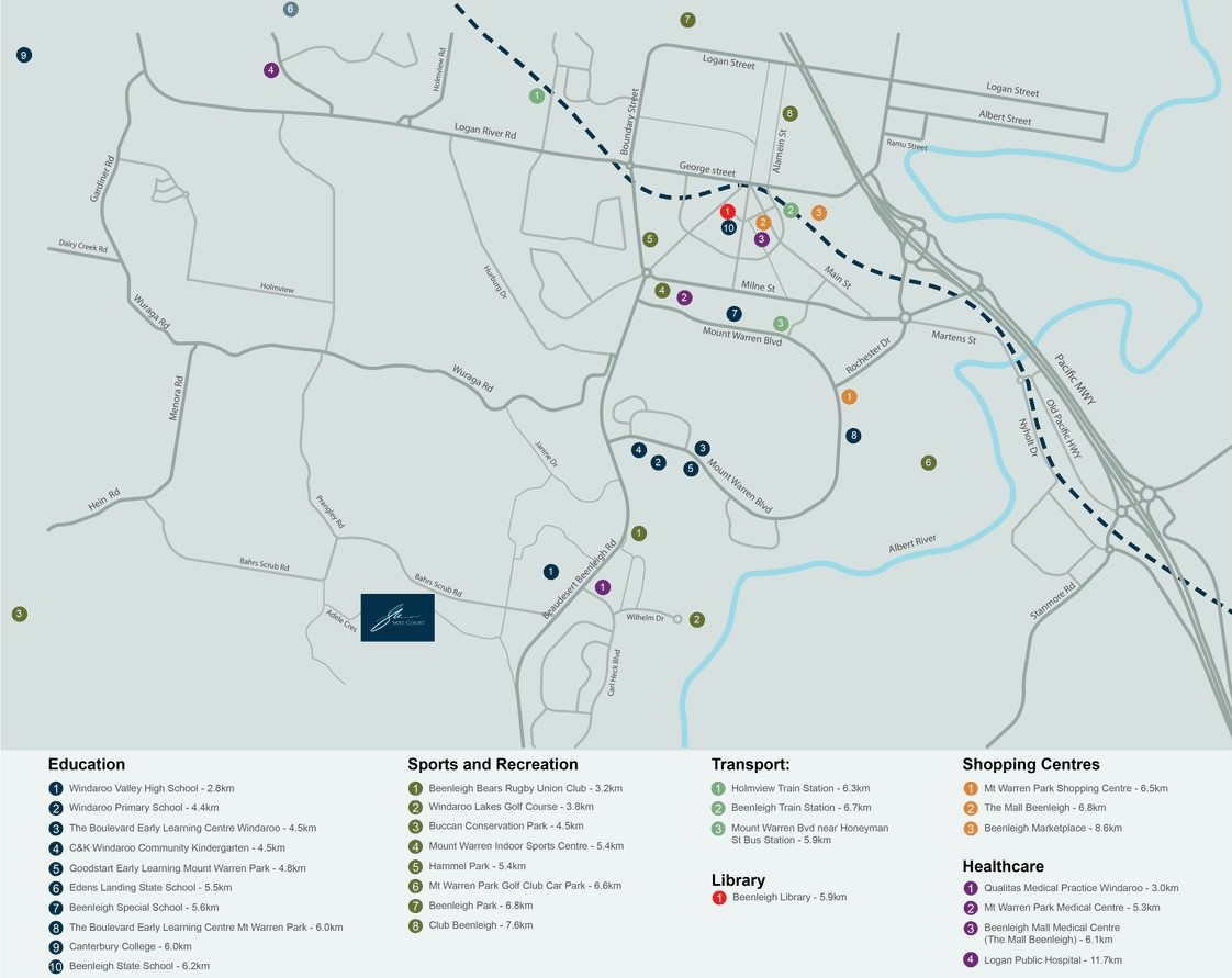 | Distance to | Brisbane CBD - 34 km south-east Gold Coast CBD - 37 km north-west Brisbane Airport - 39 km south |