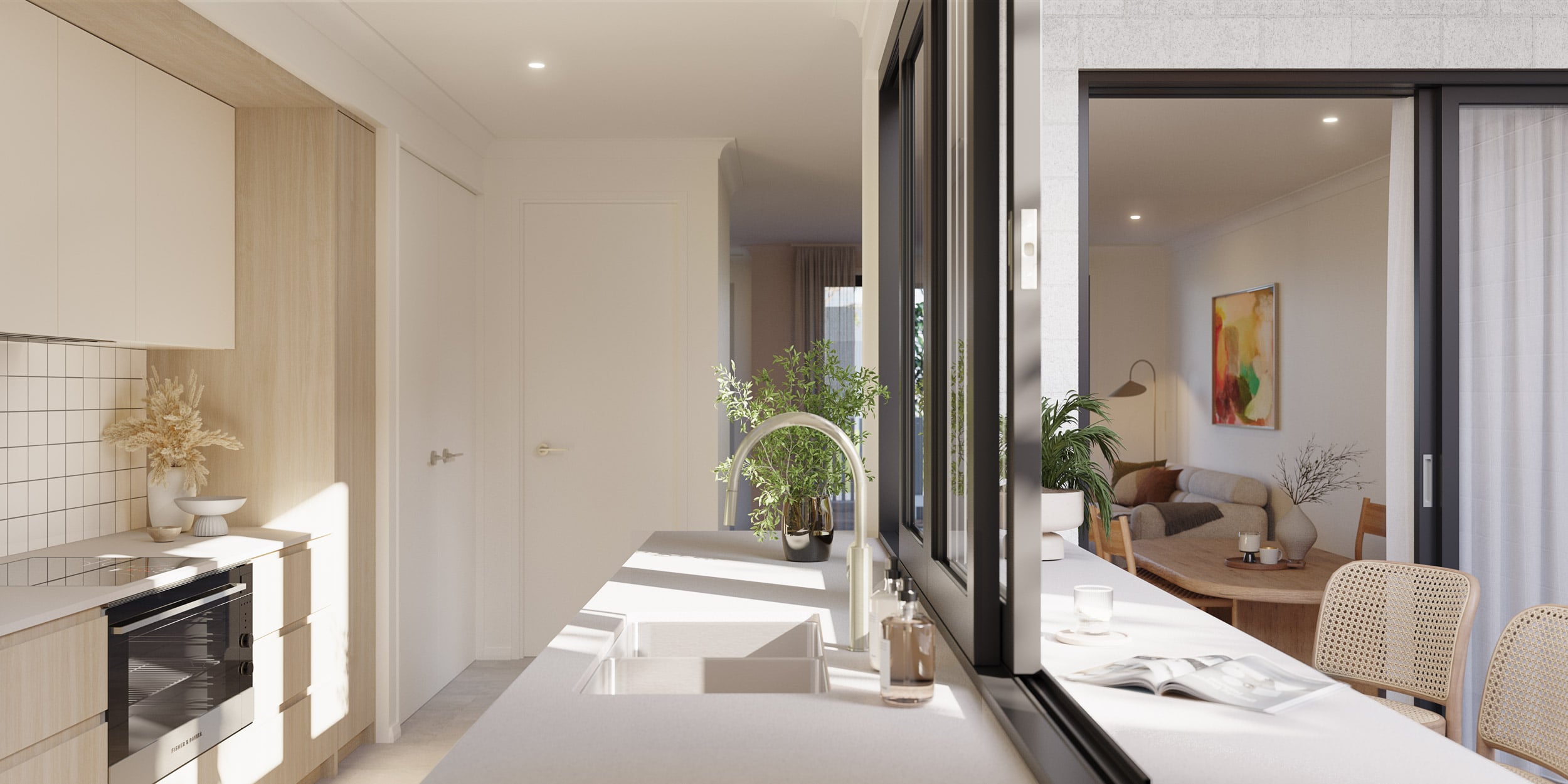 - Fisher & Paykel appliances, including cooktop, oven, rangehood, and dishwasher