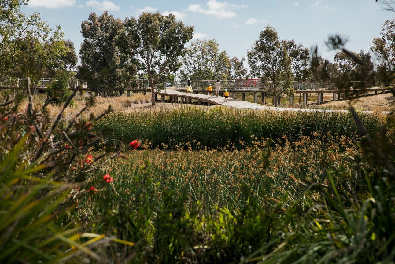 Providing connections between waterways, retained windrows and varying streetscapes of boulevards, avenues, and meandering waterside drives integrate east-west and form an expansive network of paths. Significant biodiversity values will be protected and enhanced within the Growling Grass Frog Conservation Area which extends along the Werribee River and Davis Creek, which may also be accessible to the community to allow appreciation of these values.